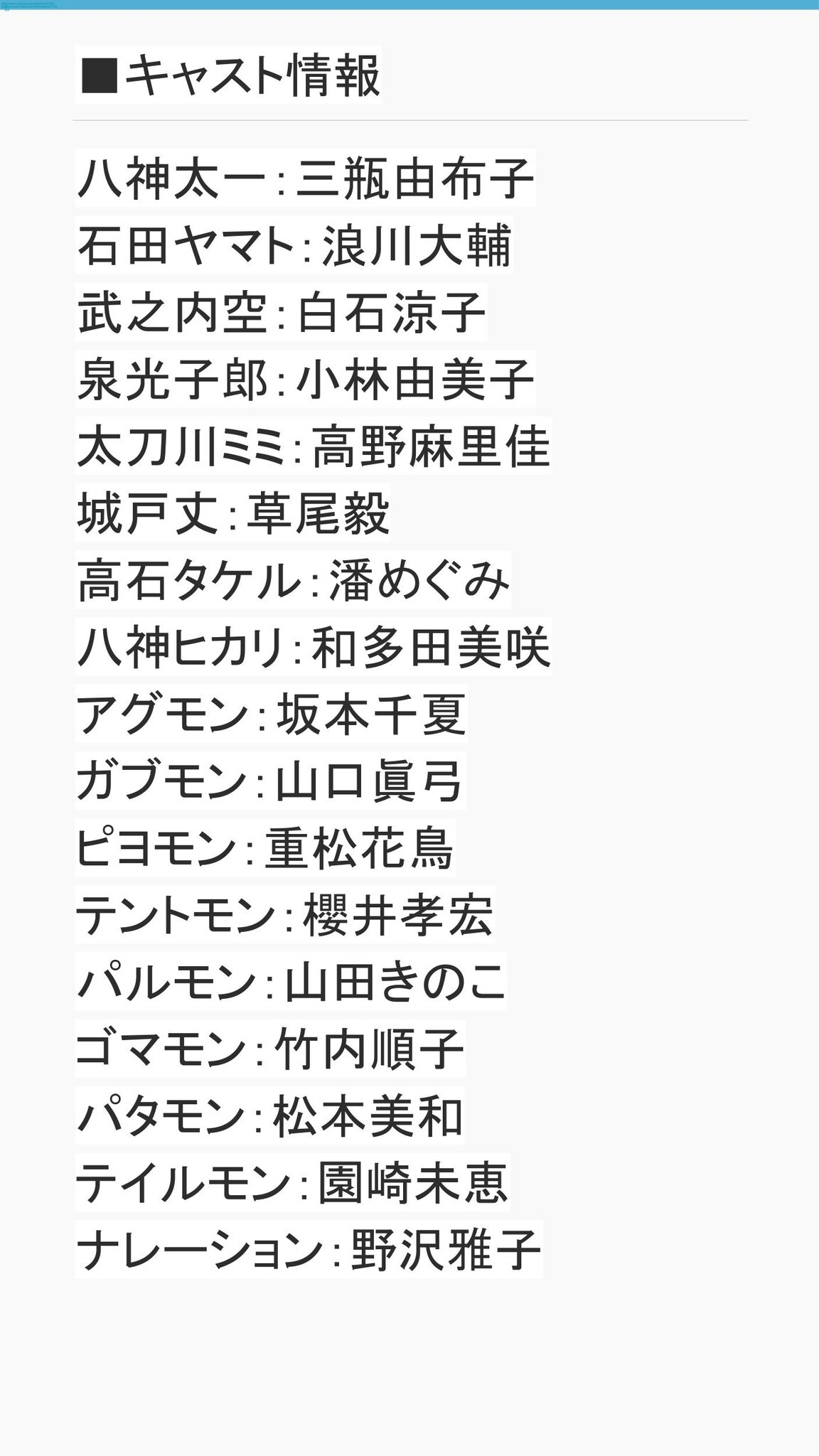兄妹神ゆう Fgo ウマ娘 原神 プリコネ無課金勢 デジモンアドベンチャー のキャストが皆勤賞されました デジモン達は昔や昨今と同じでそのまま続投 気になる選ばれし子供達はというと フムフム あくまで自分が知っている中でですが 太一役の